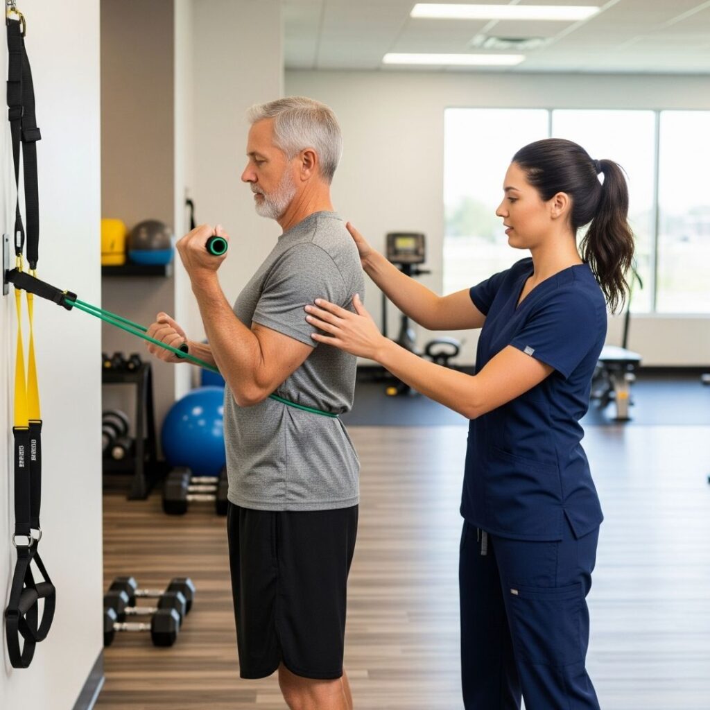 Recovery doesn’t end with a procedure; in fact, that’s often just the beginning. We believe that direct collaboration between surgeons and physical therapists is essential for optimal outcomes. Our in-house physical therapy team works side-by-side with our doctors to create a cohesive and personalized rehabilitation plan. This integrated approach ensures your recovery is efficient, effective, and tailored to your specific needs every step of the way.